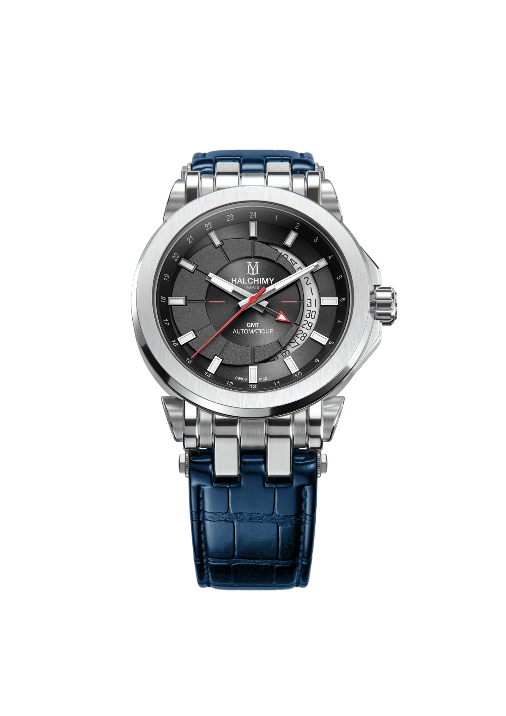 Hours, minutes, seconds, date, Blue dial, Alligator Bracelug